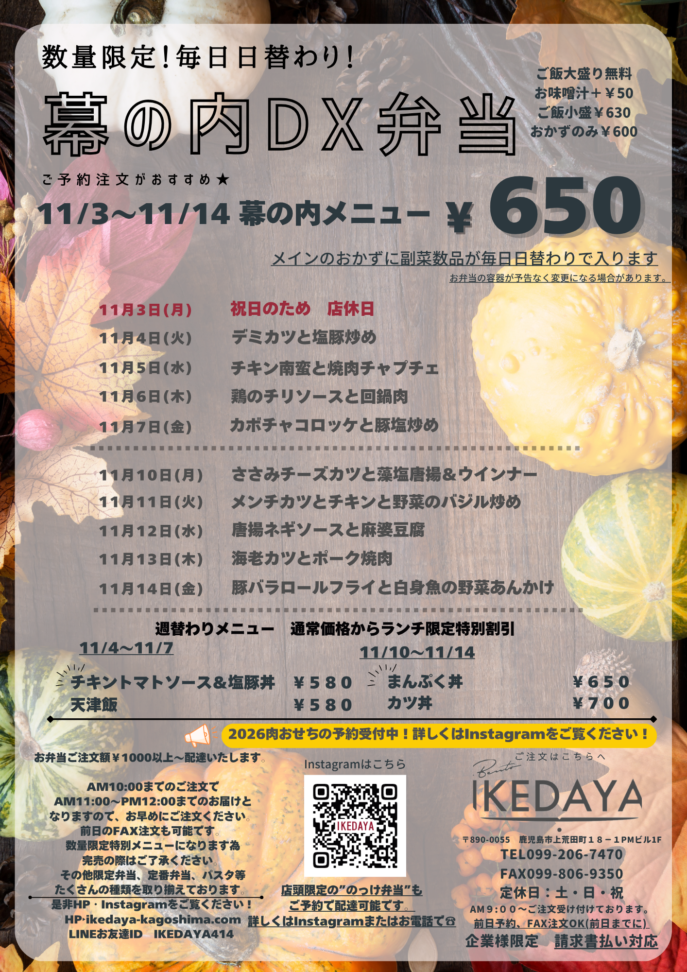 いけだ屋ブログ 2024.10.22 お知らせ 2025肉おせち 2023.10.06 お知らせ 2023年Xmasパーティーセットのご予約開始! 2023.10.06 お知らせ 2024!肉おせち予約開始!! 2022.11.28 お知らせ 肉おせち今年も完売!! 2022.10.12 お知らせ 2023肉おせち予約開始! ブログ一覧を見る