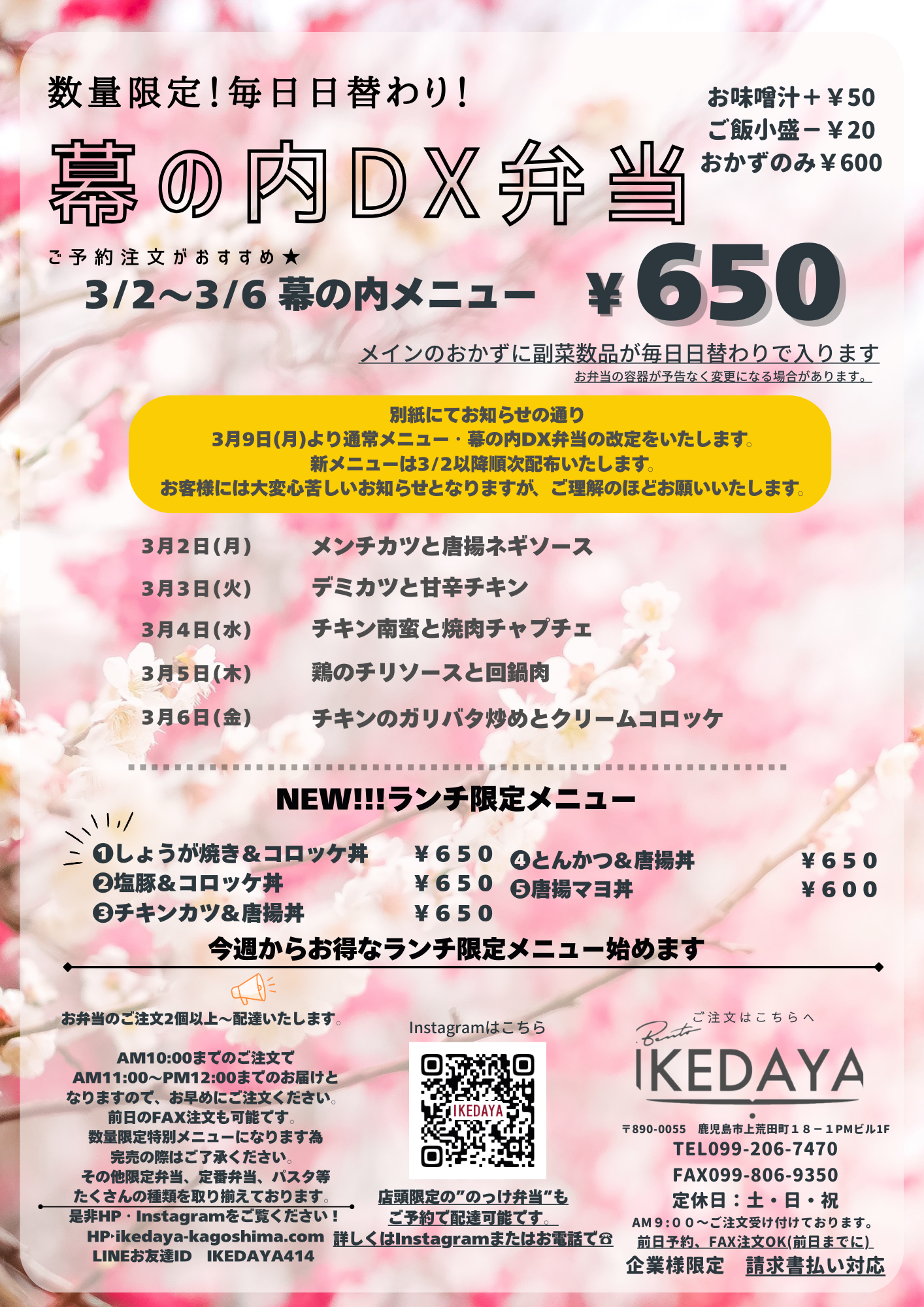 いけだ屋の想い 毎日の昼食、夕食に、「満腹」「満足」のお弁当を食べていただきたい!!安心安全なお弁当で満腹!!満足!!になれるよう、心を込めてお弁当をお作り致します。当店のこだわりや想いのこもったお弁当で“満腹”“満足”になってもらい、少しでも毎日の仕事や家事、学校などに頑張る皆様の力になれたら幸いです。 いけだ屋のこだわりを見る